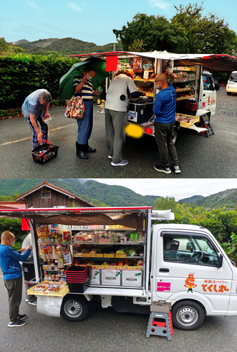 | 周りに商店が少ないさんみ苑グループホームに強い見方が現れました。7月から、移動スーパーとくし丸さんが販売を開始され、毎週木曜日の夕方に、様々な商品を持ってきてくれています。利用者さんからは、とても好評で、車が到着するとすぐに行列ができています。各々、欲しいものをかごに入れ、上手に買い物をすることができています。